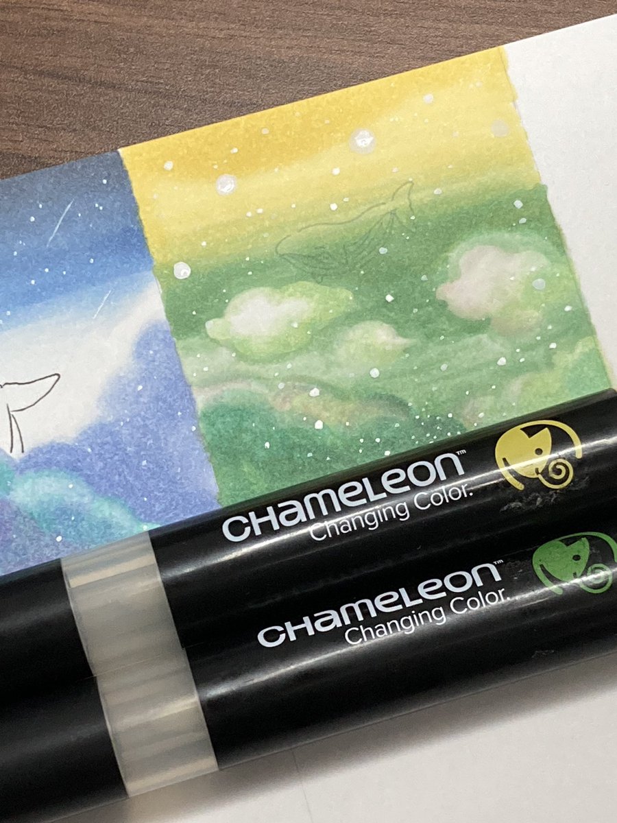 こんばんは! スタッフ2号です! 今日は星を掴む猫ちゃん🐈🐾 夜空の #グラデーション を #カメレオンペン で表現しています🥰 #イラスト #chameleonpen #illustration #art
