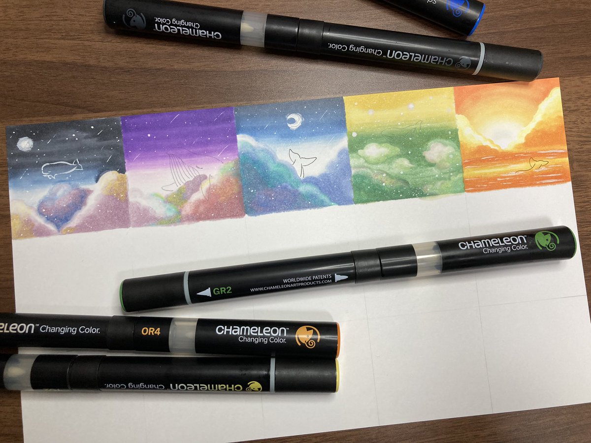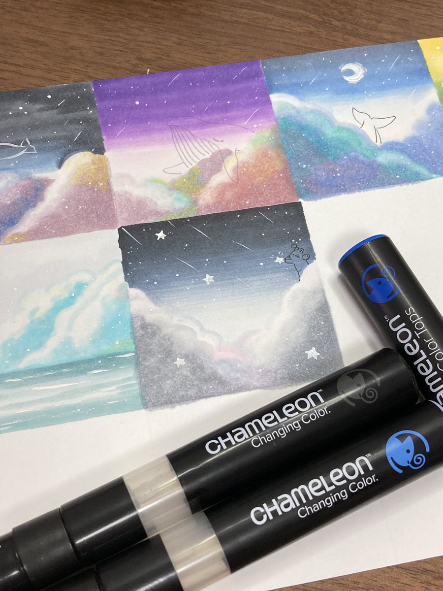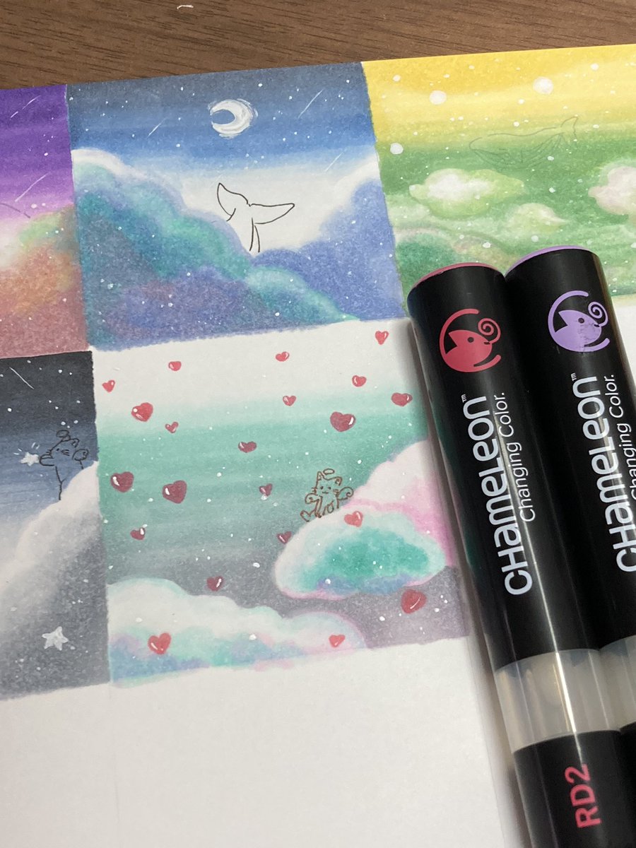 こんばんは!スタッフ2号です! 今日は #ポップ なお空に #ハート を♡ #カメレオンペン は3色以上の #グラデーション が可能なんですよ🥰 #chameleonpen #イラスト #illustration