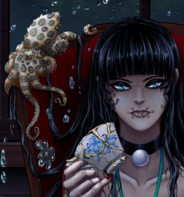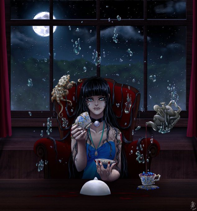 "Thirsty? You look like you've seen a ghost. Take a seat." #art #digitalart #Chamomile #OC #RPC #octopus #arttwt #artistontwitter artstation.com/artwork/8wnqBQ