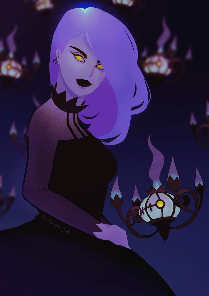 💜 #Shauntal & #Chandelure fanart because I love them & felt like drawing them together. also because I need to practice my coloring more. #Pokemon #PokemonBlackAndWhite