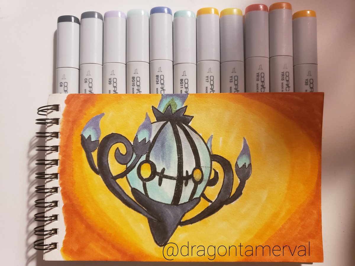 Inktober Day 5, Flame Chandelure. I have a shiny one, but this one is a normal one #inktober2022 #pokemon #chandelure #copicmarkers