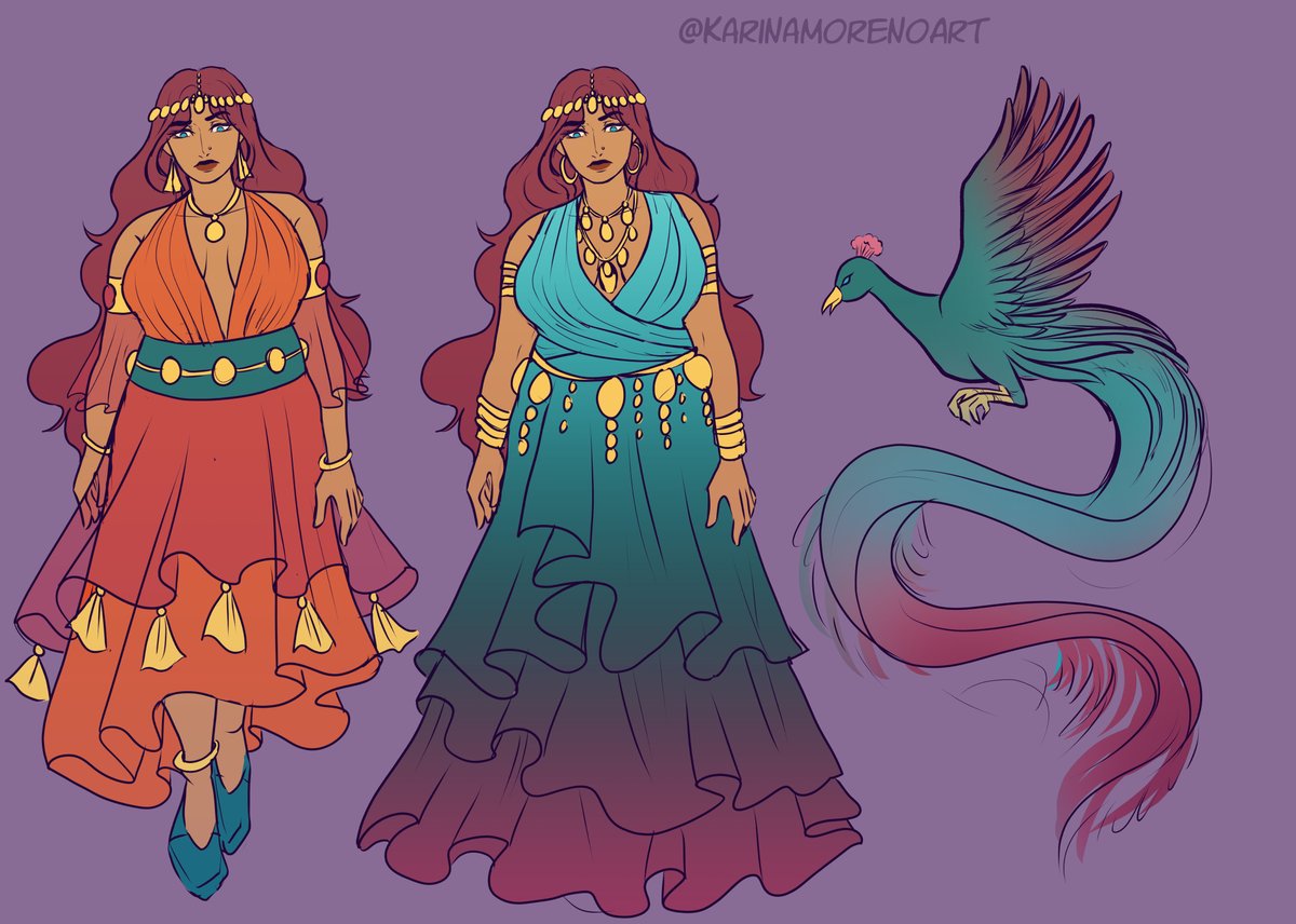 Zahra's got some elegant dresses for Act 1! I think I want to add more patterns to everyone too. #oc #originalcharacter #characterdesign #wildrosecomic #webcomic #comicprep #characterconceptart #djinn #djinni #jinni #genie #fantasyart