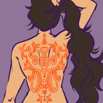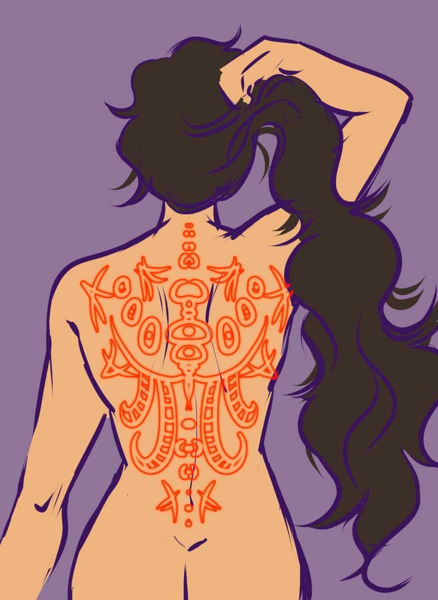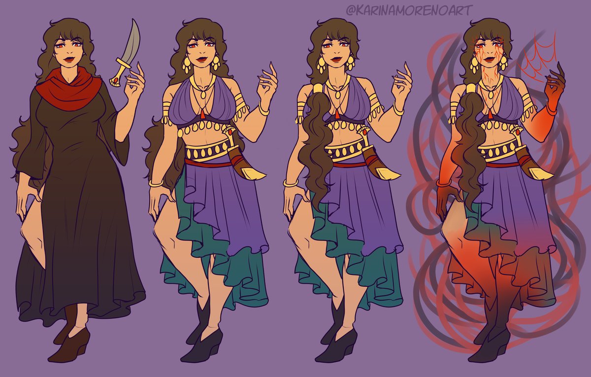 Last but not least, Kamilah's Act 1 out fits! I've also added some binding tattoos to her back. They glow when she does magic. #characterdesign #oc #originalcharacter #characterconceptart #comicprep #webcomic #wildrosecomic #djinn #jinni #genie #fantasyart #ifrit
