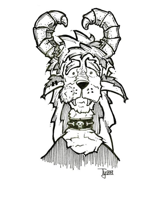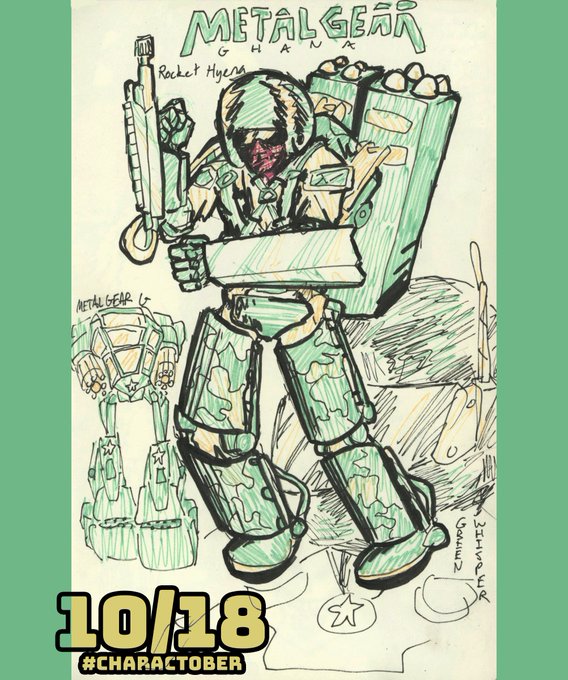 #CHARACTOBER 10/18 - Rocket Hyena (Toughest guy with the realest weapons and the wrongest trousers) based on this tweet twitter.com/RundownRabbit/… #art #illustration #inktober #ink