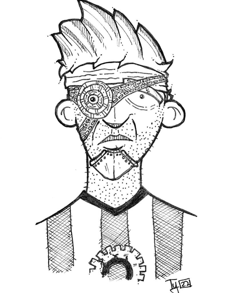 No one truly understood how much Ronald loved sports. But the #gear in his telescoping eye made it difficult to compete without risking injury. #inktober #inktober2022 #charactober #inktoberday30 #inktober2022gear instagr.am/p/CkV-O_xJsLh/