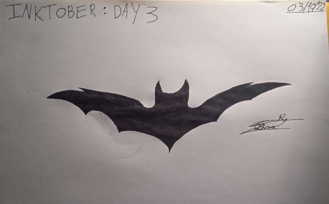 3e jour de l'Inktober ! Thème : Chauve Souris. "Je suis la nuit... Je suis... Bat-Bat !" #inktober #intober2022 #Bat #chauvesouris