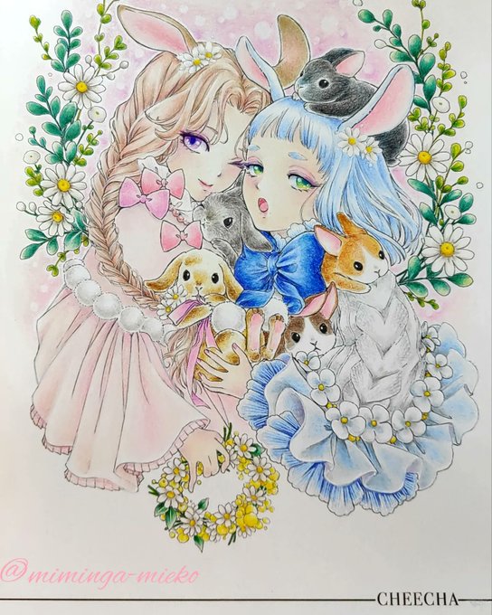 Instagramで仲良くしていただいている、ちほさん(@cheecha.chiho)の線画を塗らせて頂きました💕可愛いさにワクワク🥰✨楽しかった〜💖✨ ちほさん、素敵な線画をありがとうございました💖 #大人の塗り絵 #cheecha塗り絵