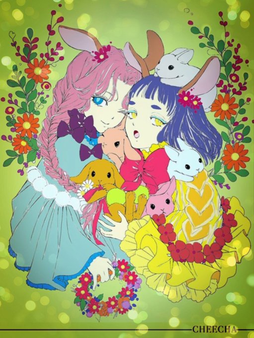 インスタのちほさん(instagram.com/cheecha.chiho/)の線画をまたまた塗らせていただきました。めちゃ可愛いイラストで(灬╹ω╹灬)┣¨キ┣¨キ♡ #cheecha塗り絵 #塗り絵 #大人の塗り絵
