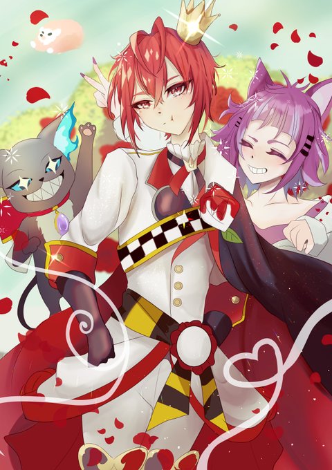 🍇๑♡✧Cayden♡๑🍇✨♦️🐱💜✨ ..a él sí me lo imagino jalando le el cabello a Cater y con Che'nya haciendo travesuras 🫶🏻✨.. #caterdiamond #chenya #artemiyartemiyevichpinker #heartslabyul #royalswordacademy #nigthravenscollege #twstファンアート #twistedwonderland #twst #fanart