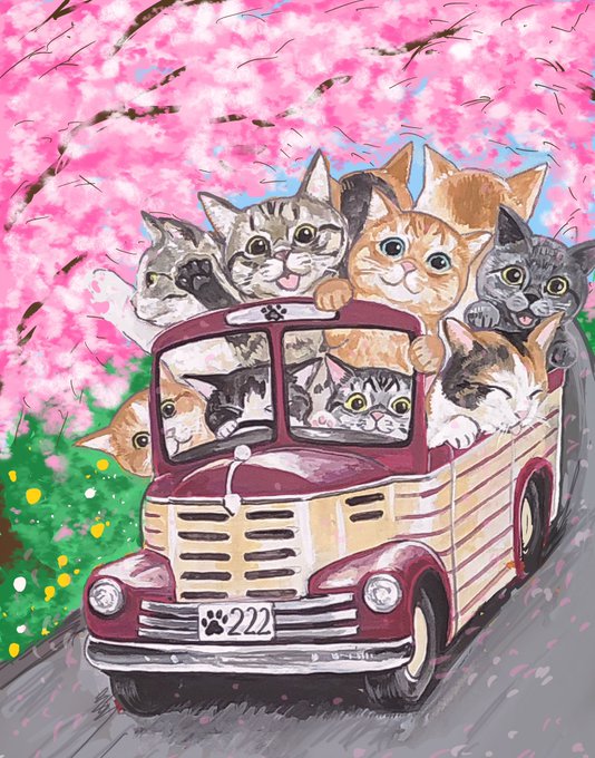 「吉野桜雲」 吉野山と近鉄さくらライナー。 天にも届こうかというくらい桜に覆われる吉野山。 古代より愛され続けたこの景色が見られる季節になりました。 #illustration #cherryblossom #nara #japan