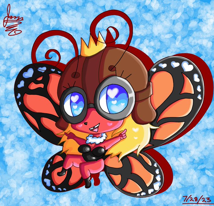 A art trade drawing for @RealstripesPage of his butterfly girl oc, I used the same pose that he used for her! #digitalart #DigitalArtist #oc #orginalcharacter #anthro #furryart #furry #arttrade #chibi #chibiart