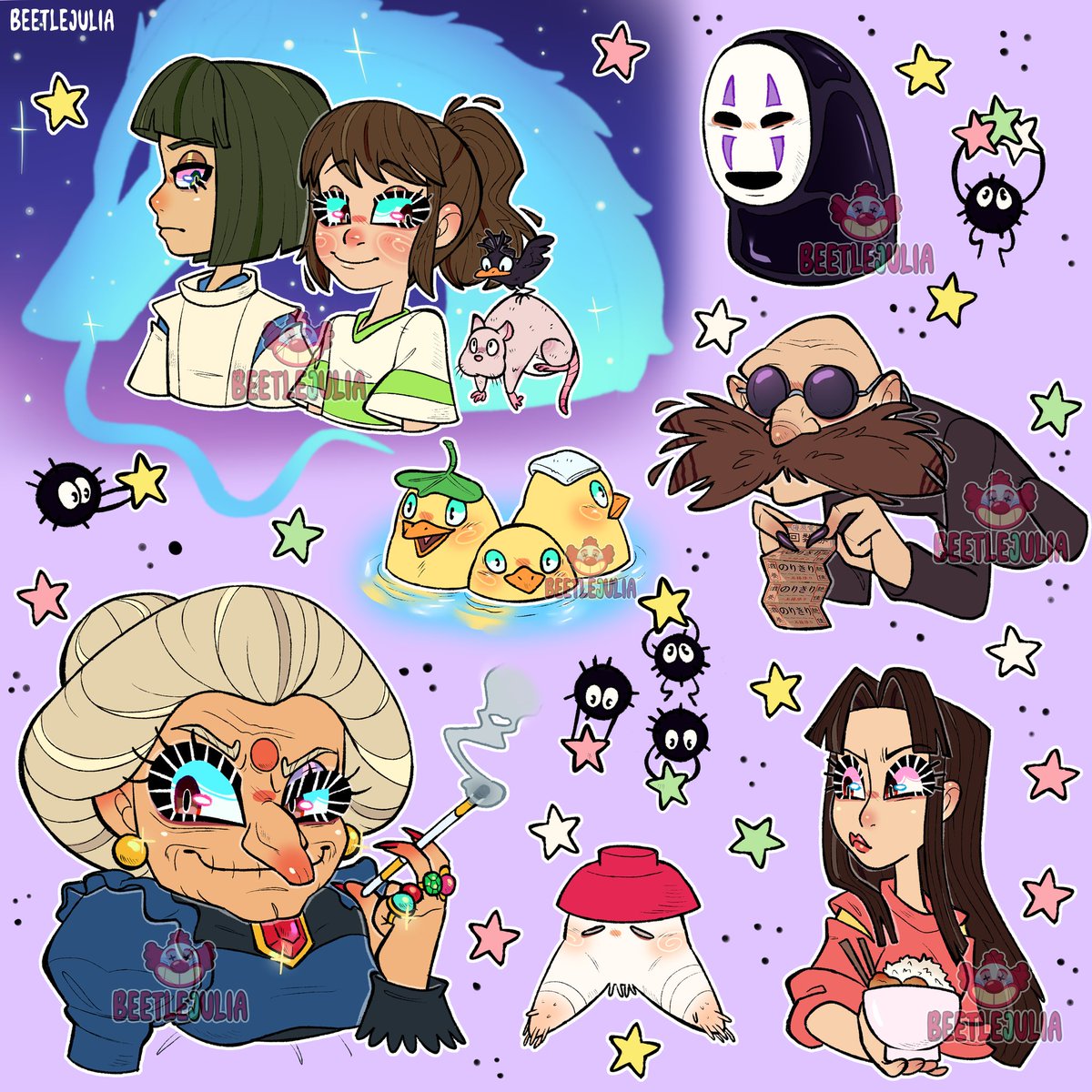 A bit of spirited away for the soul✨🐉 #digitalart #beetlejulia #cartoon #drawing #art #fanart #hayaomiyazaki #anime #studioghibli #ghibli #japan #spiritedaway #chihiro #yubaba #dragon #noface #kaonashi #kamaji #zeniba #haku #千と千尋の神隠し #aesthetic #totoro