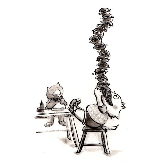 Gobble * * * * * #SCBWI #CBIGNYC #childrensbooks #childrensbookartist #childrensbookillustrator #kidlit #kidlitart #picturebooks #art #illustration #drawing #dailydrawing #midnightatelier #yukotorii #inktober #inktober52 #inktober52gobble #gobble @jakeparker @inktober