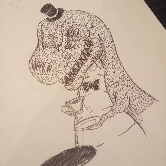 Inktober day 24: extinct (1/2) #inktober #inktober2021 #extinct #sketch #illustration #traditionalart #blackandwhite #gentleman #dinosaur #tophat #chivalry