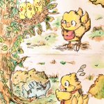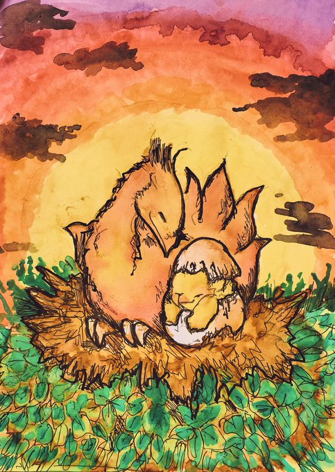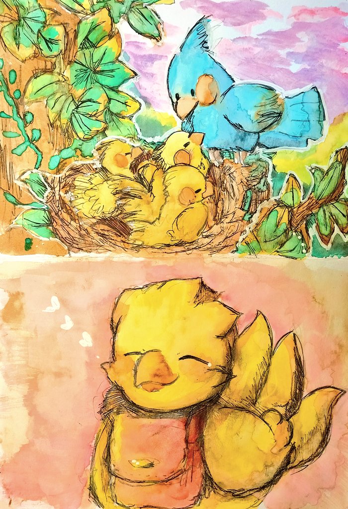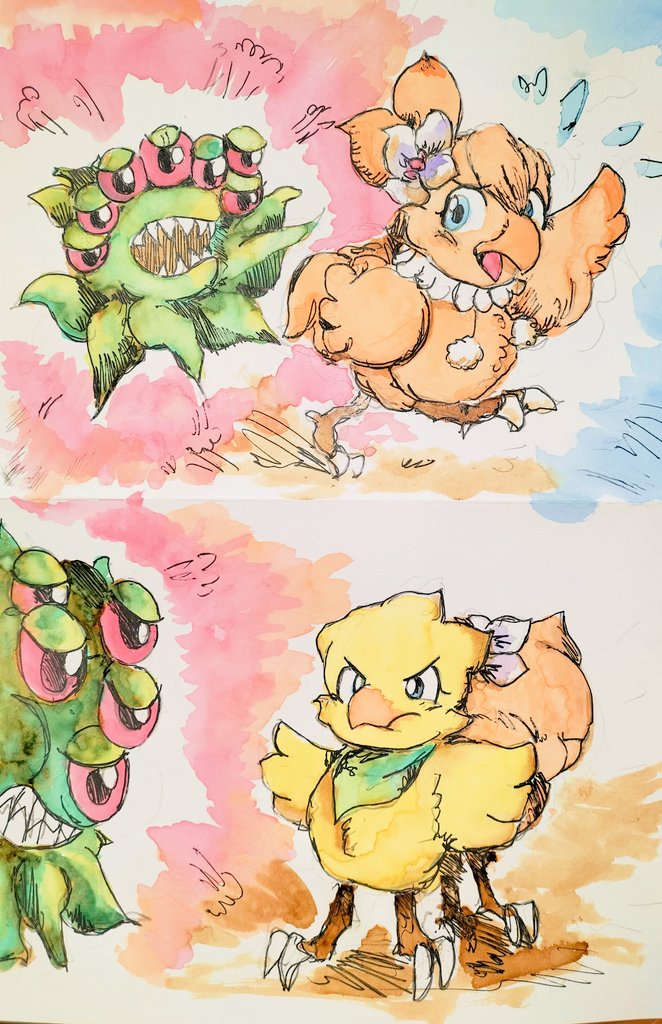 #ChocobosDungeon #ビビ・オルニティア #チョコボ #ファイナルファンタジー #FF #finalfantasy #VIVIOrnitier #アナログ画 #落書き #chocobo 🐤Chocobo & Vivi (Black mage)🧙 🌻💫🌧