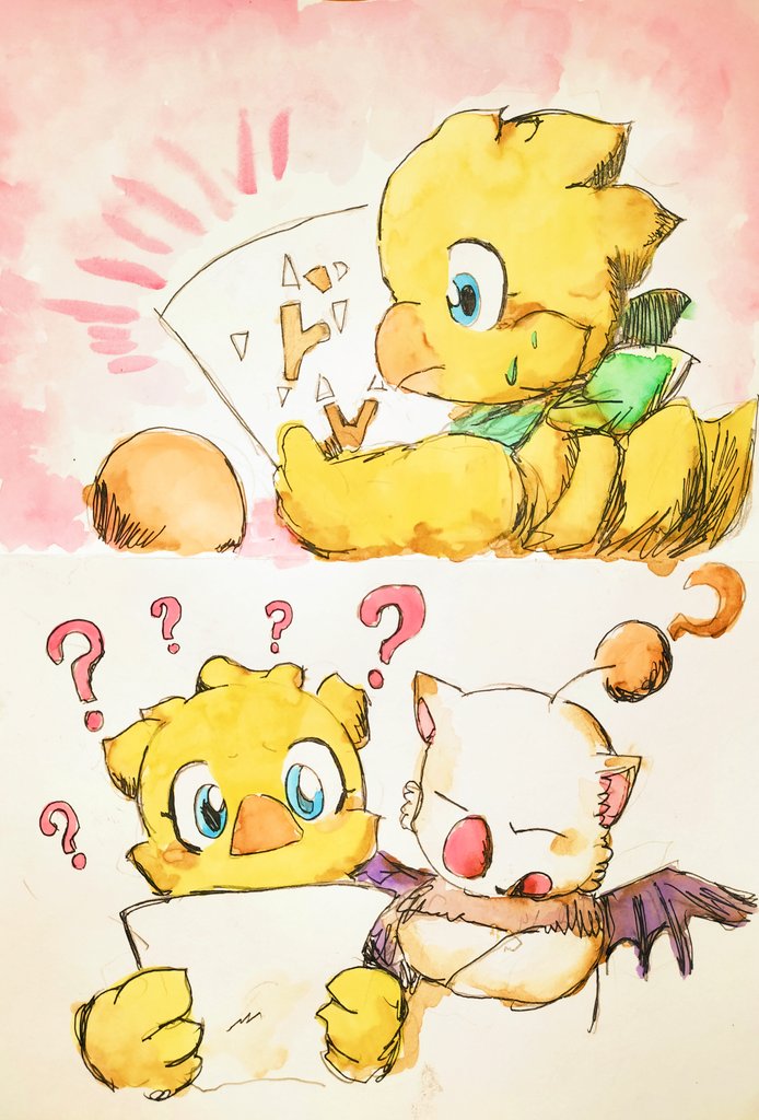 #ChocobosDungeon #ビビ・オルニティア #チョコボ #ファイナルファンタジー #FF #finalfantasy #VIVIOrnitier #アナログ画 #落書き #chocobo 🐤Chocobo & Vivi (Black mage)&Moogle 🟠 📀📸💡