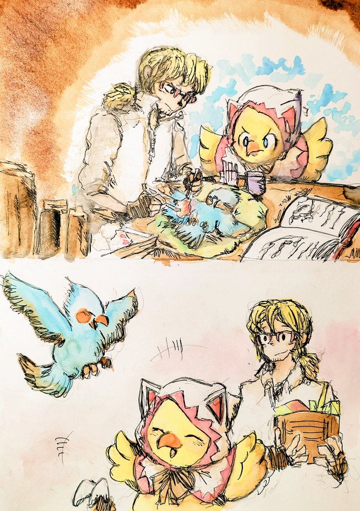 #ChocobosDungeon #シド #チョコボ #チョコボの不思議なダンジョン #ファイナルファンタジー #FF #finalfantasy #Cid #アナログ画 #落書き #chocobo 🐤 Chocobo & Cid 🤠 ❤️🩹⛑️🪺