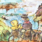 #ChocobosDungeon #シド #チョコボ #チョコボの不思議なダンジョン #ファイナルファンタジー #FF #finalfantasy #Cid #アナログ画 #落書き #chocobo 🐤 Chocobo & Cid 🤠 🛸🚵♂️🖼️