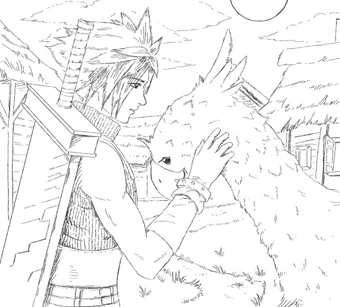 Inktober Final Day: Farm. Cloud at the farm. I finally finished the inktober challenge list! I'm completely burnt out. #inktober2022 #Inktober #inktoberday31 #Inktoberfarm #FFVII #FFVIIRemake #FFVIIR #CloudStrife #chocobo #farm #FinalFantasyVII #FinalFantasy #انكتوبر