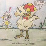 #ビビ・オルニティア #チョコボ #ファイナルファンタジー #FF #finalfantasy #VIVIOrnitier #アナログ画 #落書き #chocobo 🐤Chocobo & Vivi (Black mage)🧙 ☔🍂🍄