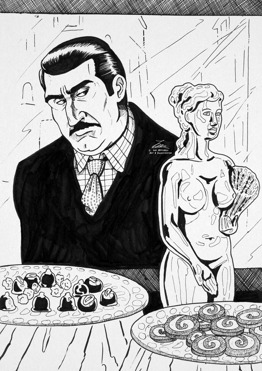 Inktober 2022 no.25 - “Tempting” 🍫 So glad I saw the film #Chocolat (2000) last month. Gave me ample inspiration for today’s prompt. #inktober #inktober2022 #ink #InktoberTempting #inktoberday25 #artistsontwitter #chocolate #alfredmolina #ComteDeReynaud