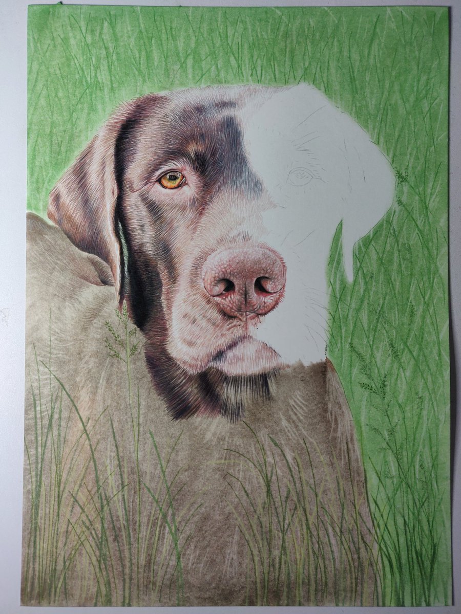 More progress today on my latest portrait of gorgeous Branston 🥰💕🐕🦺🐾x #petportraits #chocolatelabrador #dogs #panpastel #background #artistsontwitter #art #artist #artwork