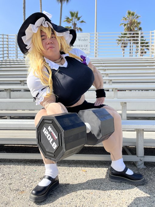 Girls are now pumping iron, please wait warmly... Photos take by @countchief #東方Project #touhou #cosplay #chomarisa #marisakirisame #musclebeach