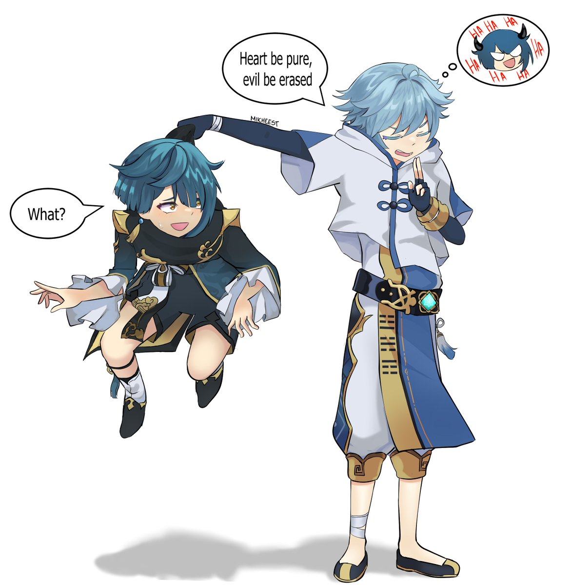 C: I will exorcist you because you are evil. X: 👁️👄👁️💧 #genshinimpact #xingqiu #xingchiu #chongyun #XingYun #genshinimpactfanart #chongyunxxingqiu #xingqiuxchongyun