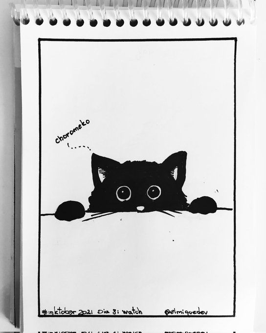 #inktober2021 día 8: WATCH Una vez más el #choromeko apareciendo, está vez, espiando, como siempre 👀 @inktober #inktober #inktoberday8 #inktober2021watch #inktoberwatch #watch #choromeko #inkart #inkartwork #cats