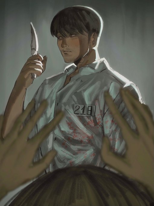 #panelatober day 16 - cutting objects. the unresolved sexual tension between these two is something. #squidgame #ChoSangWoo #SeongGiHun #round6 #fanart #inktober2021