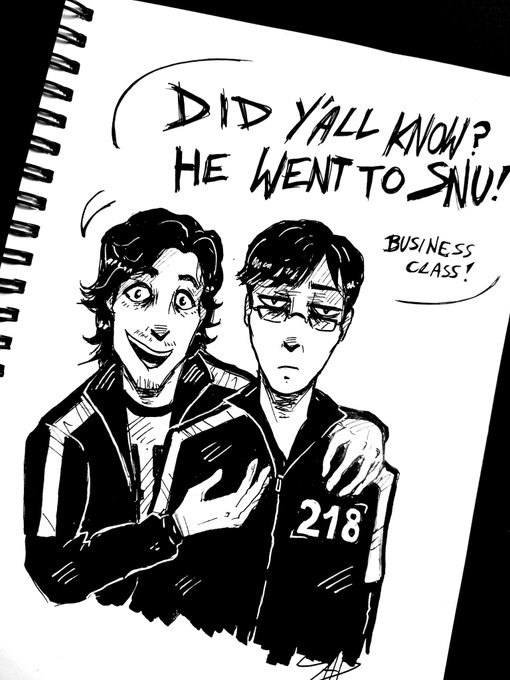 i loved their character dynamic so much bring them back #SqiudGame #squidgamefanart #ChoSangwoo #SeongGiHun
