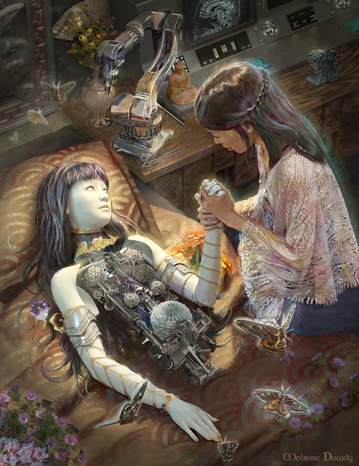 When I made this illustration, I wanted to convey the horror of being alive and mortal. Feeling it in a big way lately; it takes patience, love, and a steel spirit to live in this world. And something like a surrender to fate, for sanity's sake. #artistontwitter #chronicillness