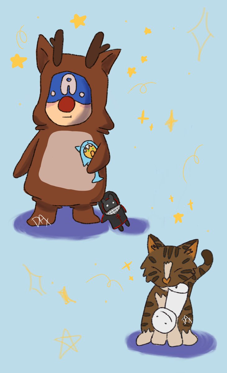 Always wanted to try doing a DTIYS🍃 So here's a overpowered menace in a reindeer onesie w/ plushys✨ [ #church40k #イラスト #callahanfanart #badboyhalofanart #foolishgamersfanart #dreamfanart ]
