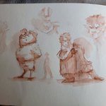 Church doodling. We sat outside this morning (don't want to catch Omicrom Covid). We brought blankets to stay cozy, and i sketched Garden Clam characters while listening to the message. #gardenclan #characterdesign #kidlitart #watercolor #churchsketch