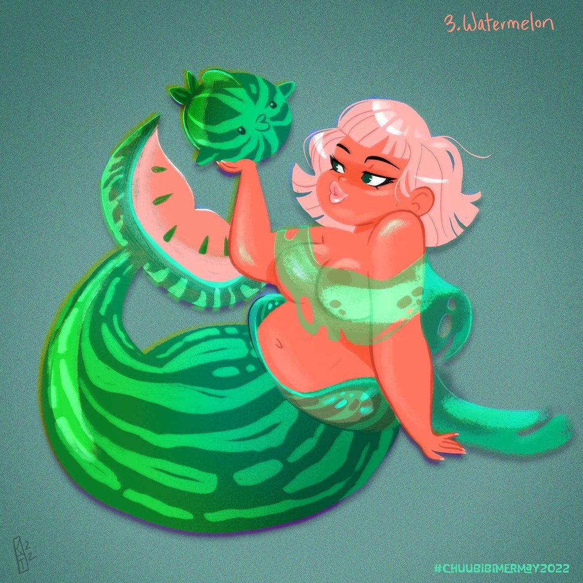 Day 3 of #mermay2022 - #watermelon colors inspired by @meyoco_ 🍉 @chuubibi #chuubibimermay2022 #characterdesign #mermay