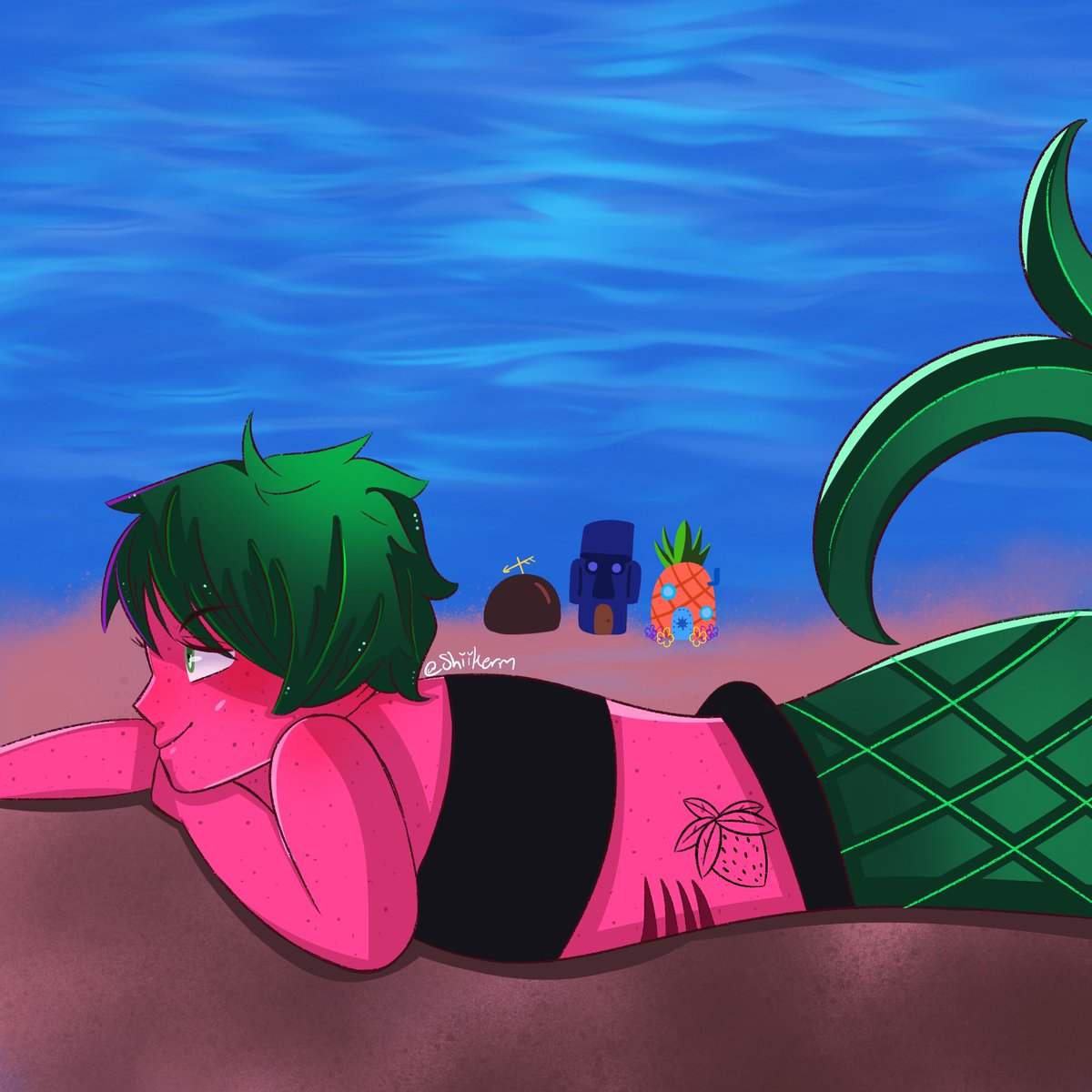Yay #mermay 🧜♀️ instead of the #officialmermay I’m gonna try and do some #fruitymermaids from @Chuubibi #chuubibimermay2022 Let’s see how far I get lol. Day one is #strawberry 🍓 #mermay2022 #characterdesign
