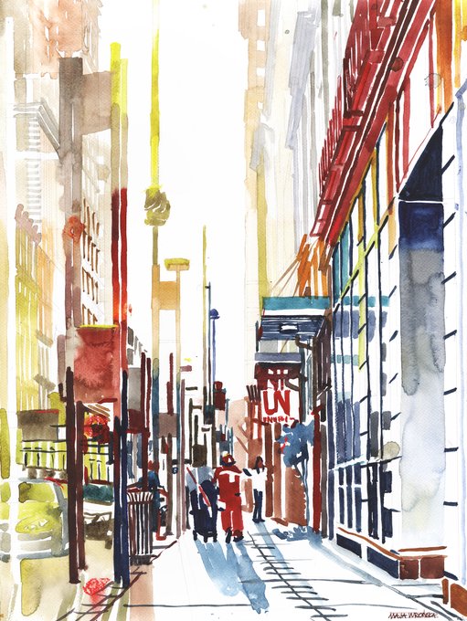 new watercolor of Cincinnati area next to 4th Street original: majawronska.bigcartel.com/product/cincin… prints: society6.com/product/cincin… #cincinnati #city #sketch #urbansketchers #watercolor_planet #watercolorart #urbansketching #urbansketch