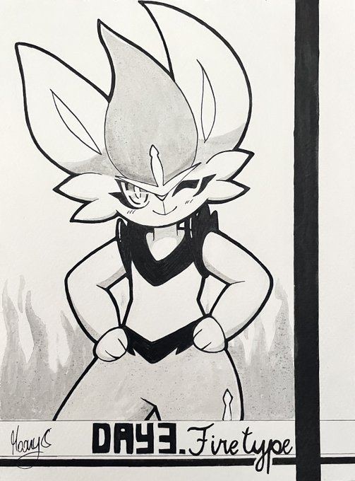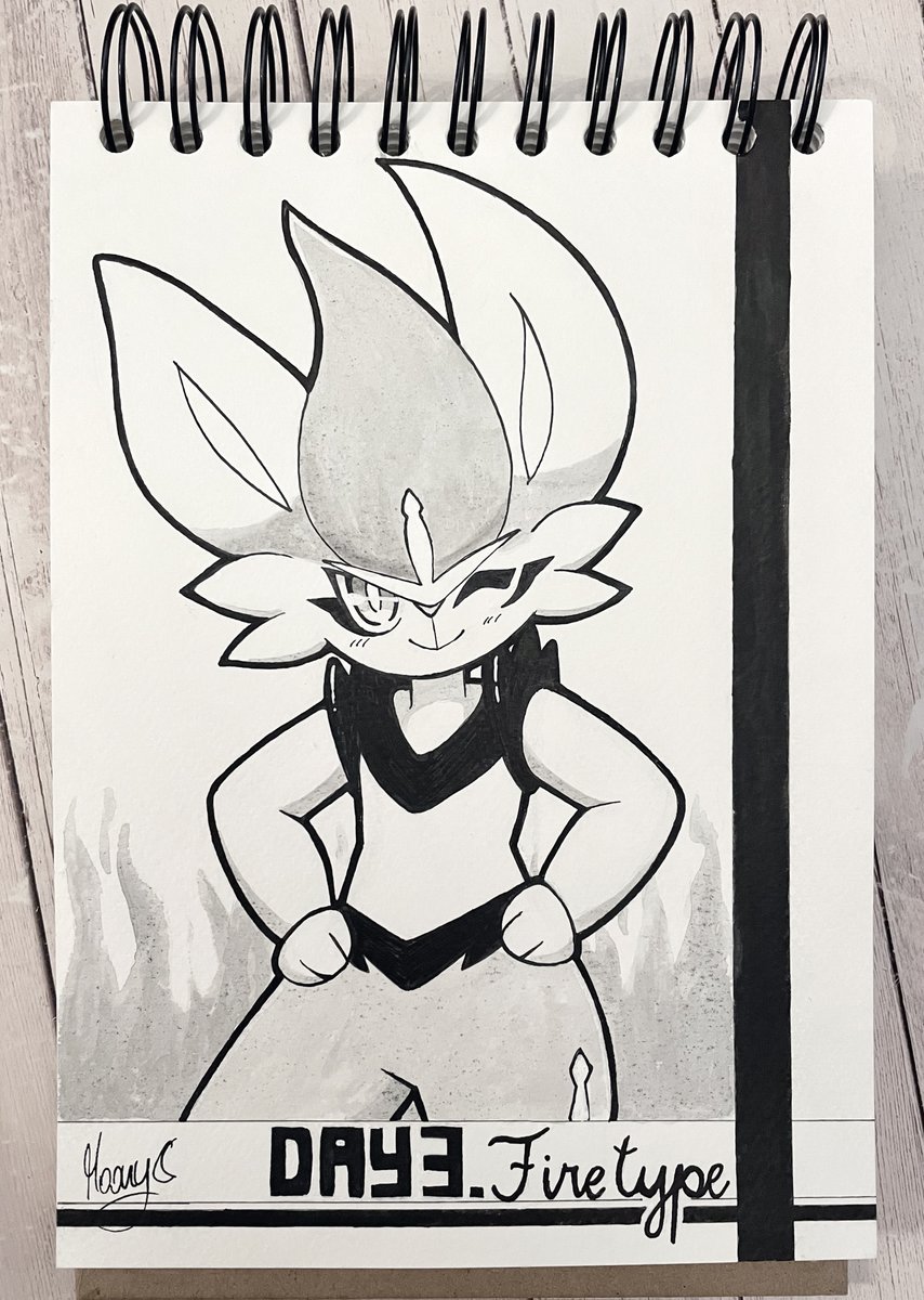 I, uhm, totally forgot to post yesterday >w<'' Day 3: Fire type #traditionalart #inktober #poketober #pokemon #cinderace