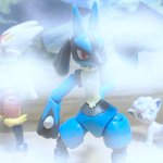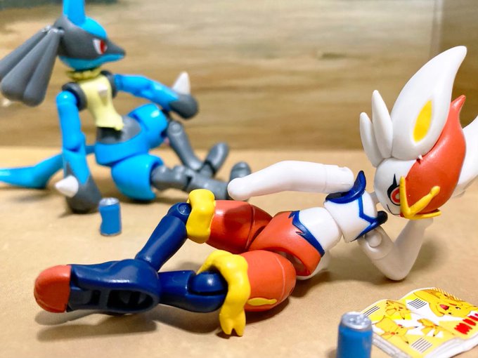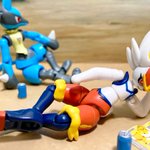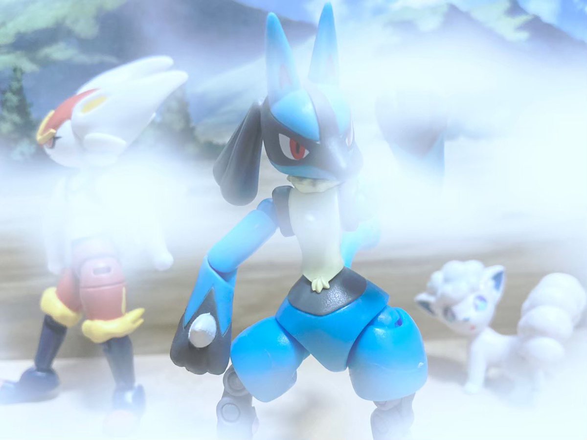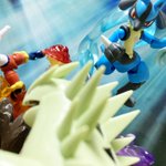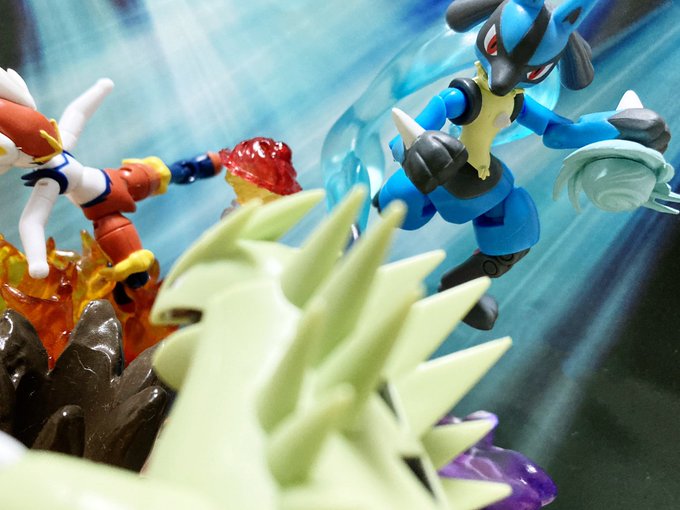 #夜のフィギュア撮影会 2/27 お題 『赤・緑・青』【遅刻】 三竦み #Pokemon #ポケモン #オモ写 #バンギラス #Tyranitar #ルカリオ #Lucario #エースバーン #Cinderace