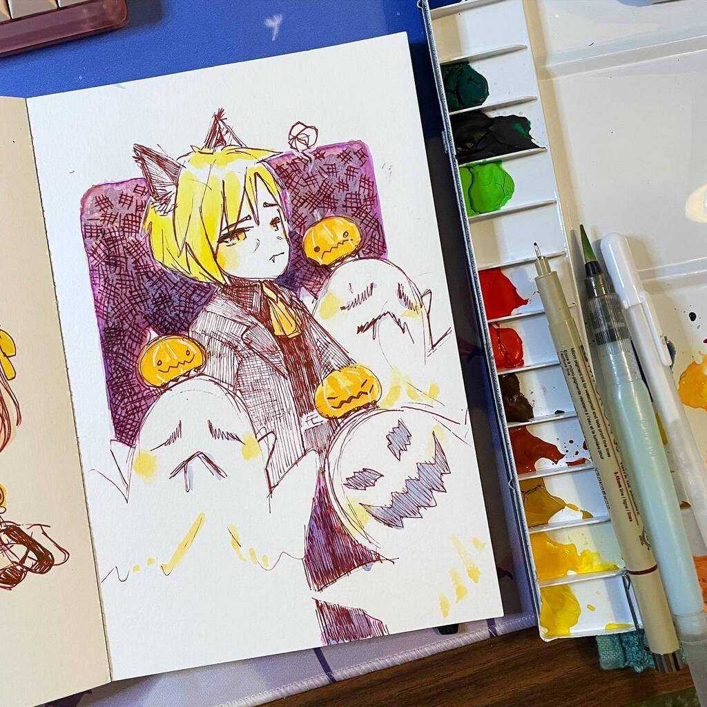 Daily illustration 5/31 — We did a spooky photoshoot and 3 itty bitty ghosties took a liking to @wan8334 . #koiwatercolors #art #illustration #kawaii #finalfatansy #finalfantasyxiv #ffxiv #ffxivart #fanart #ffxivfanart #allsaintswake #halloween #cindy… instagr.am/p/CkU8r3iu9BT/