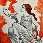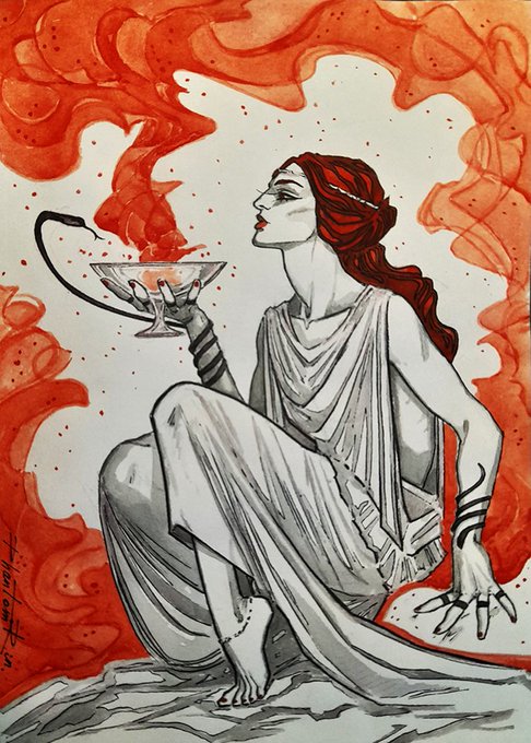 Inktober. Day 24 - Circe. #Inktober #inktober2022 #Circe #mythology #enchantress #lady #red #art #illustration #traditionalart #PhantomRin