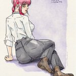 Well, the final version of this #fanart of #FayeValentine from the #anime Cowboy #Bebop. I hope you like this #artwork! 😇. #SpikeSpiegel #CowboyBebop #purplehair #watercolors #bobhaircut #classicanime #seeyouspacecowboy #femmefatale #pinup #pinupgirl #pinups #animegirl