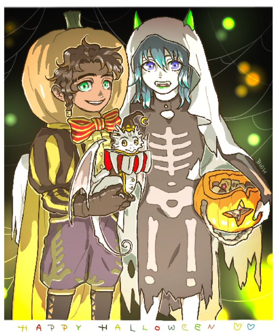 Trick or Treat!🎃💛💚👻🎃✨ 小小库和小贝需要很多很多糖果!(此处小小白✨友情出镜 #fe3h #claudeleth #クロレス #ClaudelethHalloween