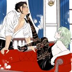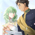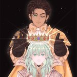 A belated Happy Birthday gift for @Kilala_4 , featuring #Claudeleth; Byleth is wearing a gorgeous peacock dress that Ki came up with a while back :3