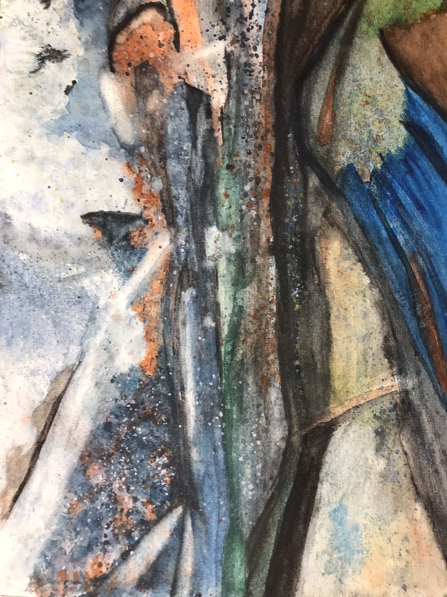 «Fault » 2022 Rather than rip up a failed painting, I changed mindset and continued in a different direction, letting it take me to an unpredictable place. #watercolorpainting #watercolorandgraphite #abstract #clmooc