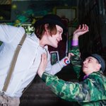 Day 1 at #WalesComicCon thanks to all the lovely folk who came by our stall. Shall we do it all again tomorrow? #cosplay #reddwarf #rimmer #fearandloathing #shaunofthedead #clockworkorange #droog #hocuspocus