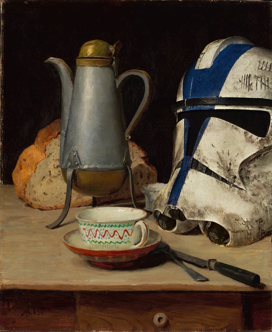 Still Life of Breakfast with Helmet Let me know what you think #starwars #clonetrooper #clonewars #501st #anakinskywalker #captainrex #ahsokatano #starwarsart @starwars