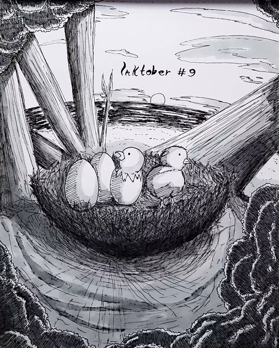 They're so cute.😍 Baby cute chicks🐥🐣🥚. @inktober #Inktober #inktober2022 #inktoberday9 #NEST #bird #birds #chick #egg #Tree #beach #sea #cloudy #cartoon #cartoonoftheday #traditionalart #sketch