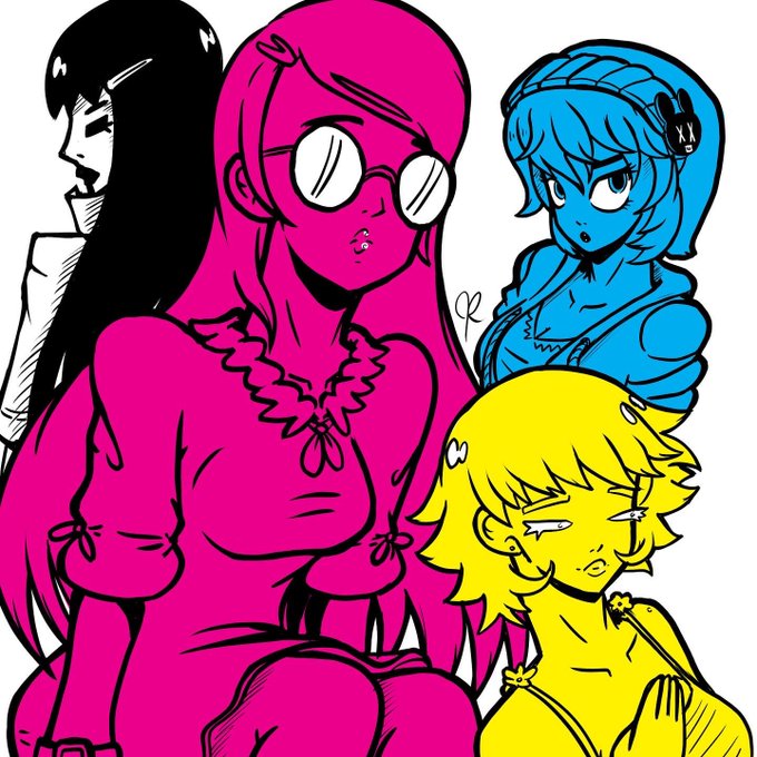 Introducing the #CMYK girls! Please excuse the brightness. #digitalart #printing #characterdesign
