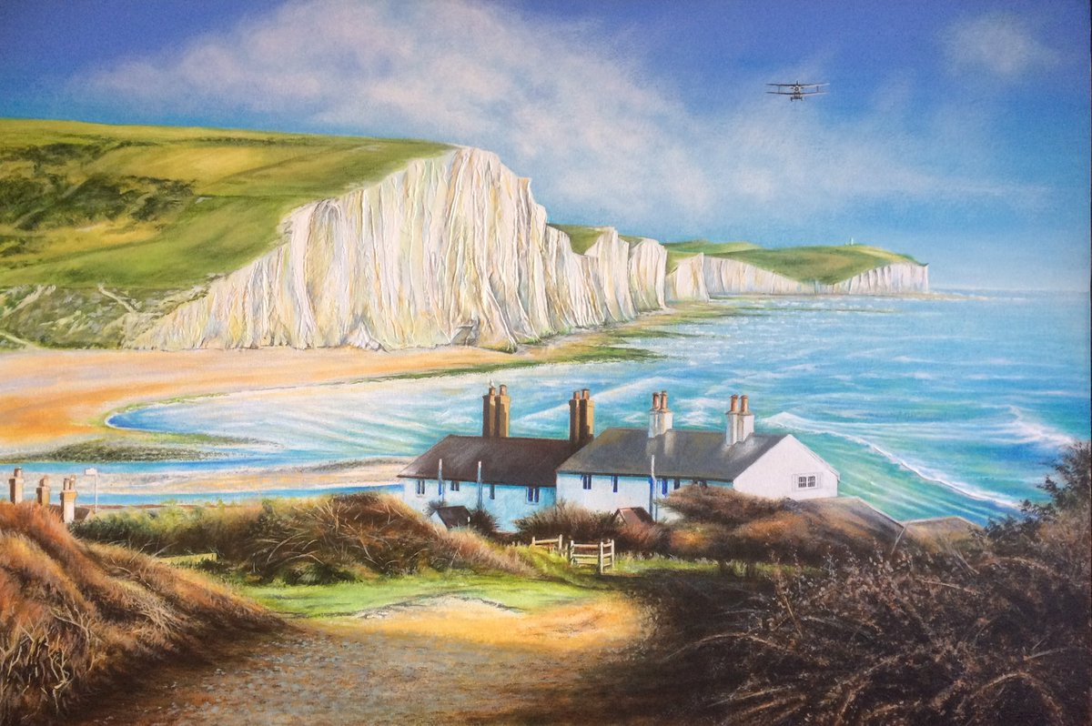 Coastguard cottages - Cuckmere Haven - Acrylic on canvas #paintseptember #painting #coast #Sussex #Saturday #artist #ArtistOnTwitter #artistsoninstagram